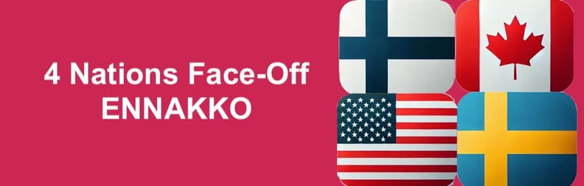 Isäntämaat Kanada ja USA saavat vastaansa pohjoisen viiman, kun Suomi ja Ruotsi edustavat Eurooppaa NHL:n järjestämässä neljän maan turnauksessa helmikuussa 13.2-21.2.2025. Tässä artikkelissa listaamme parhaat vedonlyönnin bonukset ja tarjoukset turnaukseen, asetelmat, kertoimet sekä vihjeet ennakoinnin kera.