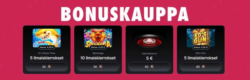 Nettikasinoiden bonuskauppa toimii perusperiaatteeltaan samalla tavalla, kun mitä tahansa nettikauppa. Vaihdat vain rahaa haluamaasi hyödykkeeseen: tässä tapauksessa kasinon valuuttaa joko ilmaiskierroksiin, bonusrahaan tai ilmaisvetoihin.