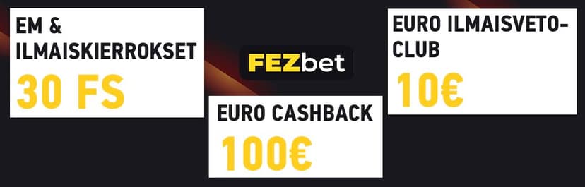 Kun lähdimme katselemaan tarkemmin millaisia erikoistarjouksia EM-kisat vedonlyönti voisi tällä kertaa tarjota, olimme pudota tuolilta saavuttuamme Fezbetin tarjoussivun äärelle. Peräti kahdeksan Euro 2020 -kisoille omistettua diiliä yhdistettynä useisiin muihin kiinteisiin bonuksiin tarjoaa pelaajalle valtavan mahdollisuuden lunastaa huimasti lisäetuja kisapeleihin.
